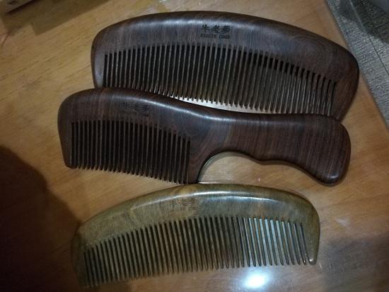 首先要说的是,使用拼接工艺并不是为了好看,也不是为了偷工减料。拼接梳子的工艺更复杂,制作难度更大。之所以采用拼接工艺,主要是为了使木质或角质梳子更加坚固耐用、不易变形。 我们知道,不管是木材还是牛角、羊角,都是天然材料,会有纹理,在受到外力或受潮、受热等情况下很容易会顺着纹理断裂或变形,若采用拼接工艺制作,就可以将横向受力的梳齿顺着材料的纵纹制作,这样可以增加梳齿强度,避免断齿;可以将纵向受力的梳柄和梳背顺着材料的横纹制作,可增加梳柄的强度,避免断柄;并且,横纵纹理交错拼接而成的梳子在受潮或受热等情况下更加稳固,要比一体成型的木梳或角梳更加结实。