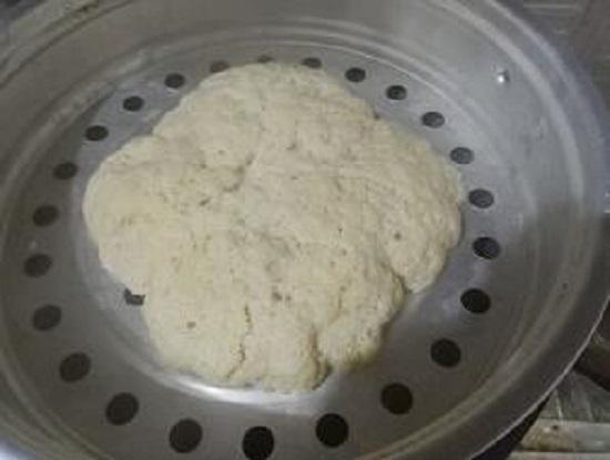 烧一锅开水,准备一只圆形的、高沿的、直径小于锅口的圆盘(铝质笼屉最佳,不锈钢盆也不错;我自己用的是不锈钢盆),舀入薄薄的一层淀粉液(边搅边舀入,刚好覆盖住盆底即可),将盆放入开水锅中隔水炖煮,差不多1分钟左右的时间后,面精就凝固成形了,然后再将盆放入凉水盆中将面精剥离下来即可。然后再继续重复第一次的操作,直至将容器里的淀粉液用完为止。 至于面精块,在吊面精的过程中放到锅中蒸二十分钟就可出锅(当然,也可以在吊面精之前或之后制作)。